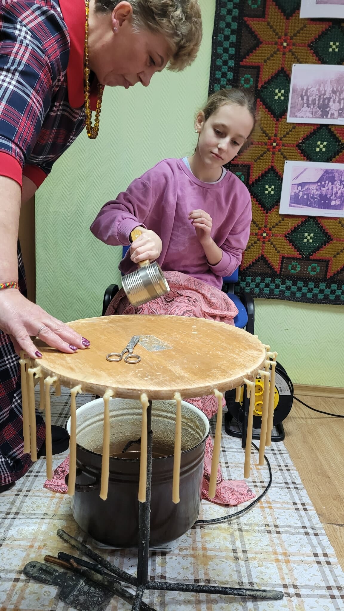 - Žvakių liejimas. Ši veikla daugeliui tapo tikru atradimu – ketvirtokai stebėjo, kaip iš karšto vaško po truputį formuojama žvakė, ir sužinojo, kodėl senovėje žvakės buvo brangus ir ne kiekvienai šeimai prieinamas dalykas.