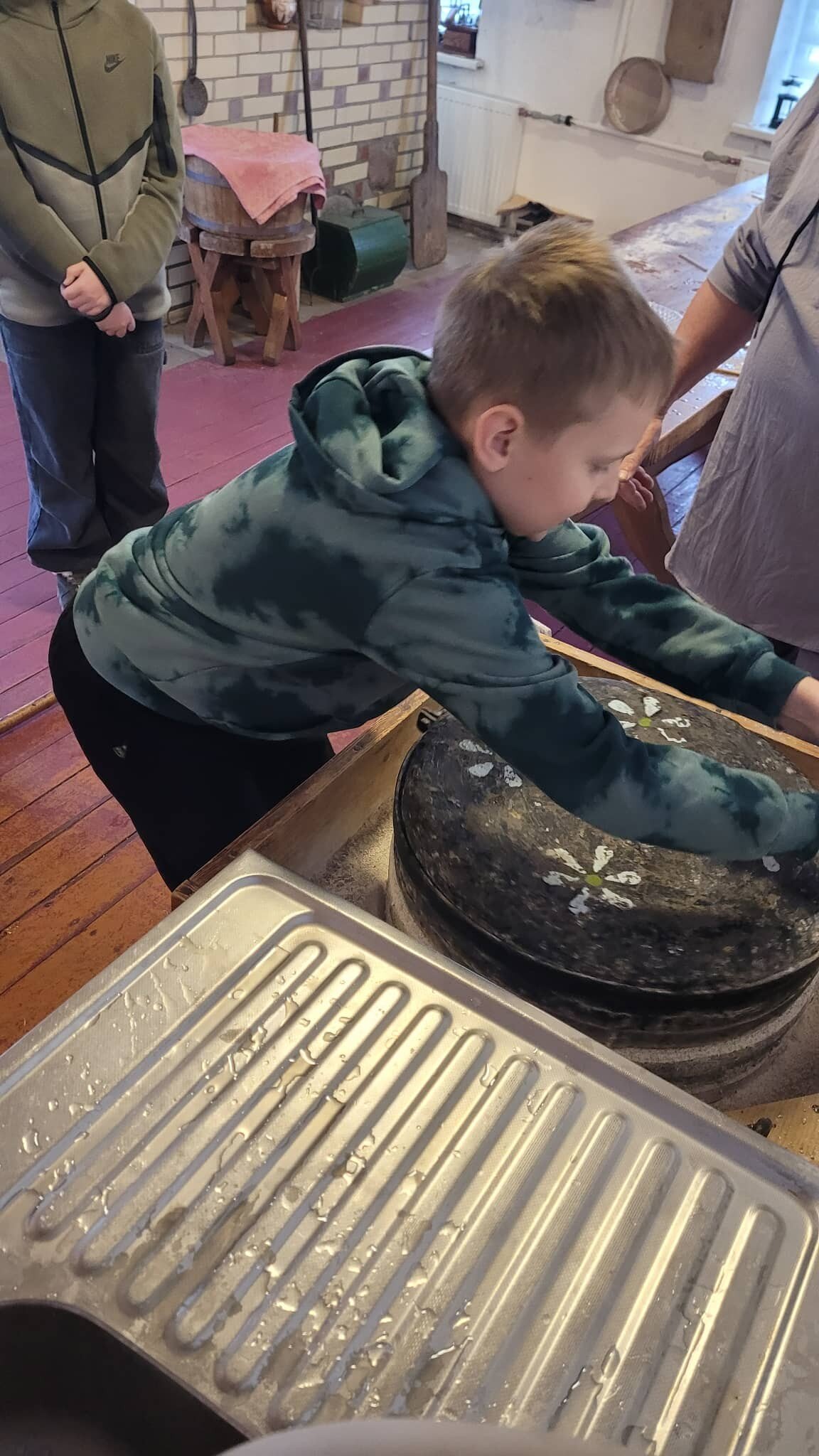 Vėliau mokiniai patys minkė tešlą, formavo mažus kepalėlius, juos puošė ir stebėjo, kaip jie keliauja į krosnį. Tai buvo ne tik įdomi, bet ir kūrybiška patirtis – rankose gimstanti duona leido suprasti, kiek daug darbo ir kantrybės reikalauja šis senasis amatas.
