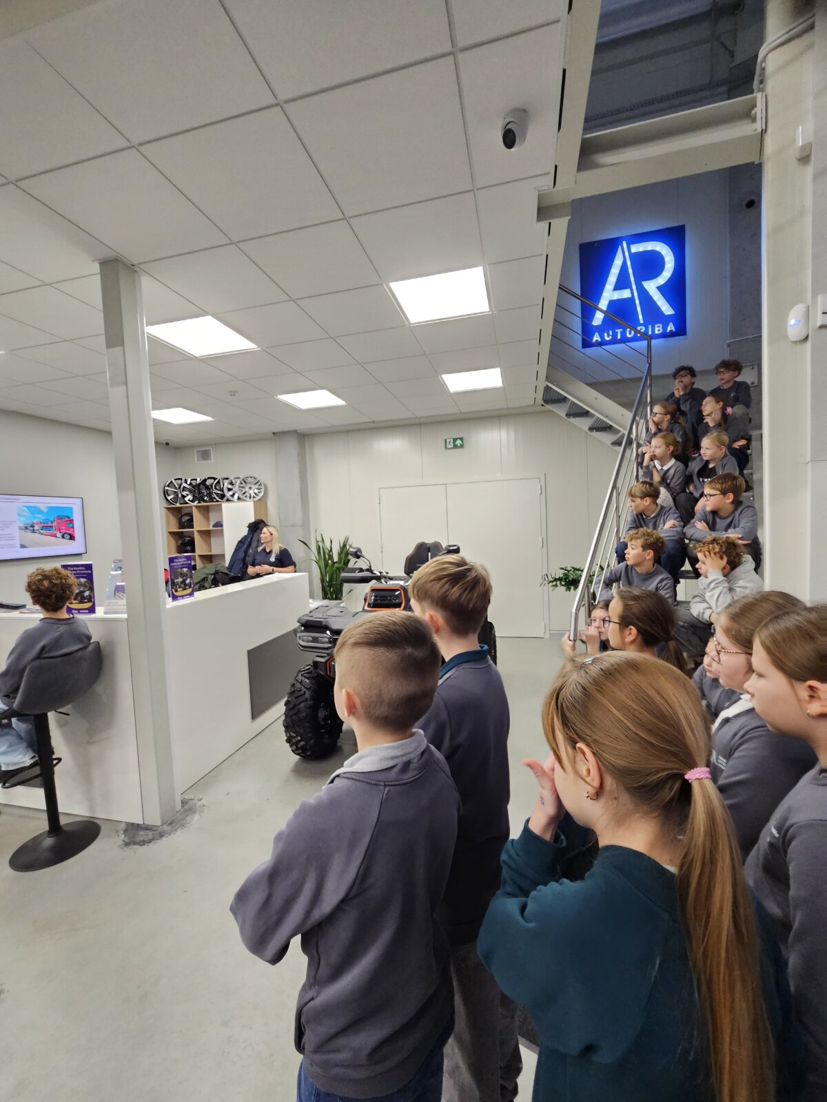 Po pristatymo mokiniai aktyviai uždavinėjo savo paruoštus klausimus, o vėliau apžiūrėjo automobilių remonto dirbtuvę, detalių sandėlį bei parduodamas transporto priemones. Didžiausia staigmena mokinių laukė pamokos pabaigoje. Jie buvo pavėžinti keturračiu ir mini automobiliu.