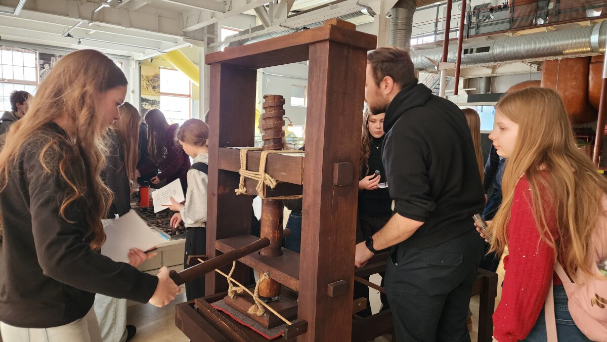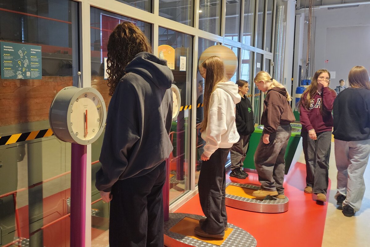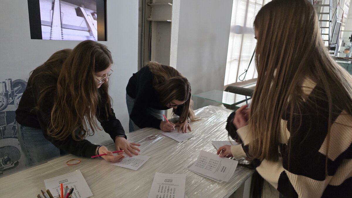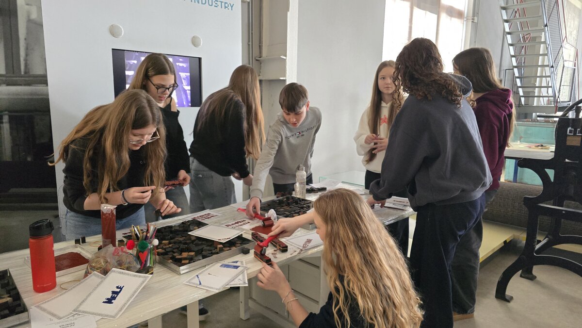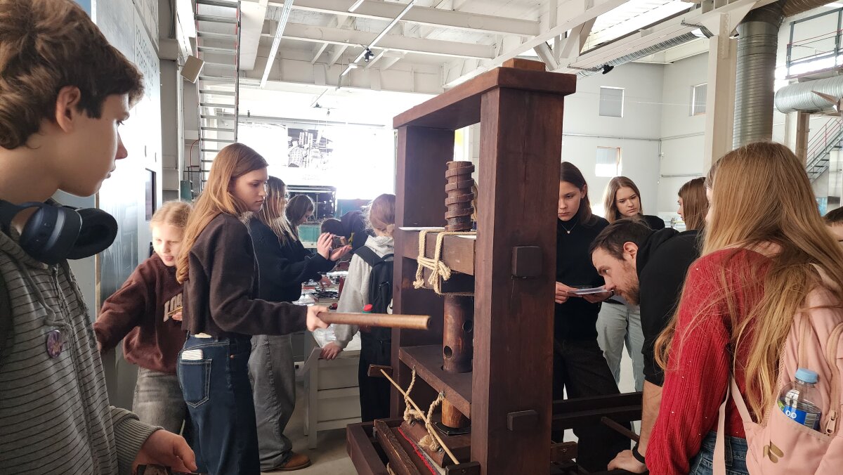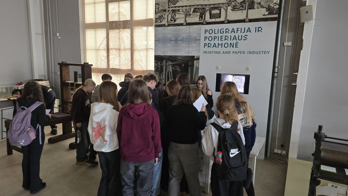 Vėliau išvyką tęsėme Energetikos ir technikos muziejuje, kur mokiniai dalyvavo dviejose skirtingose edukacinėse programose. Vienos grupės mokiniai dalyvavo „Skorinos spaudos dirbtuvėse“. Jie sužinojo, kad daugiau nei prieš 500 metų Pranciškus Skorina Vilniuje įkūrė pirmąją spaustuvę Rytų Europoje ir 1522 m. išleido pirmąją knygą Lietuvos Didžiojoje Kunigaikštystėje – Mažoji kelionių knygelė. Mokiniai patys išbandė senąją spaudos techniką: iš literų rinko tekstą, dėliojo savo vardus ar trumpus sveikinimus ir rankiniu būdu spausdino lapus. Praktinė veikla leido geriau suprasti, kiek kruopštumo, kantrybės ir tikslumo reikalavo pirmosios spaudos procesas.