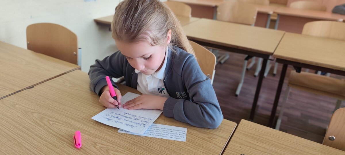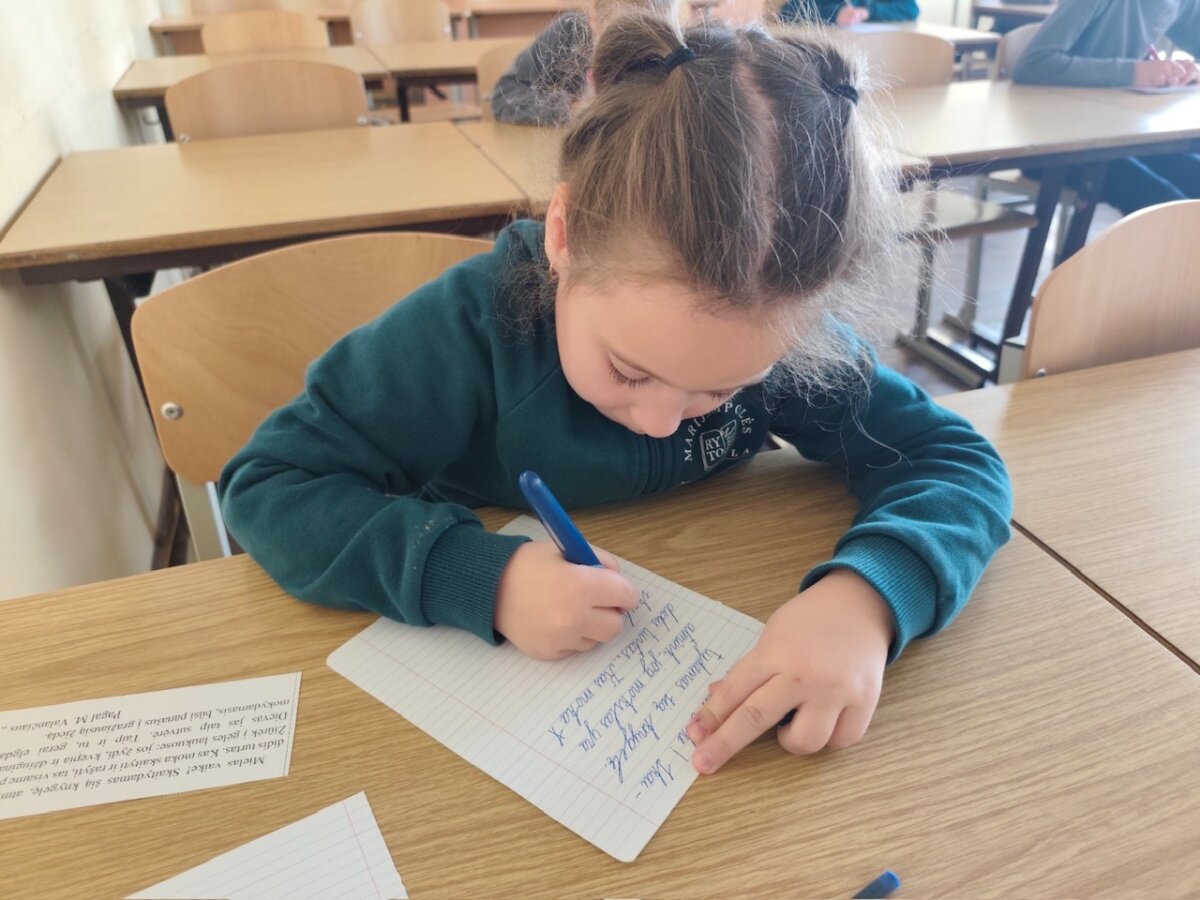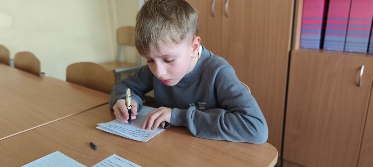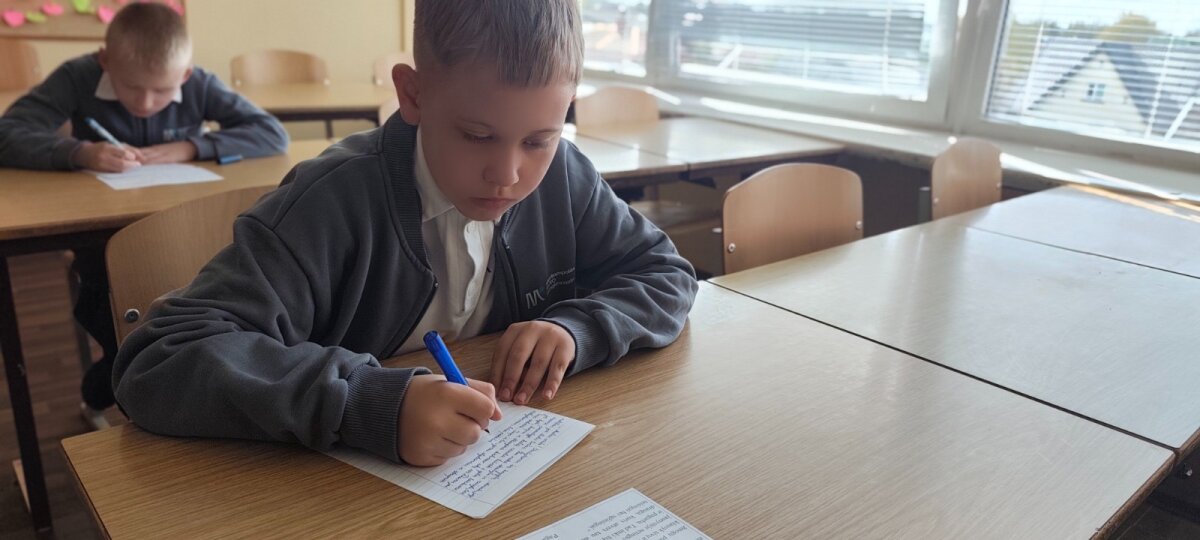 Išklausę pasakojimo, pradinukai kruopščiai ir dailiai nurašė ištrauką iš "Vaikų knygelės". Mažieji dalyviai stengėsi ne tik gražiai rašyti, bet ir susikaupti, kantriai atlikti užduotį bei prisiliesti prie lietuvių literatūrinio paveldo.