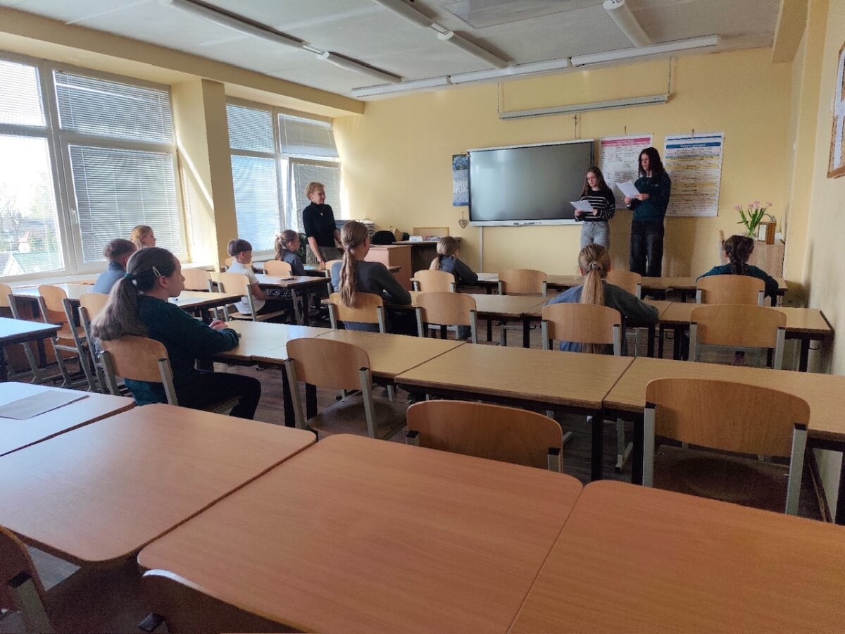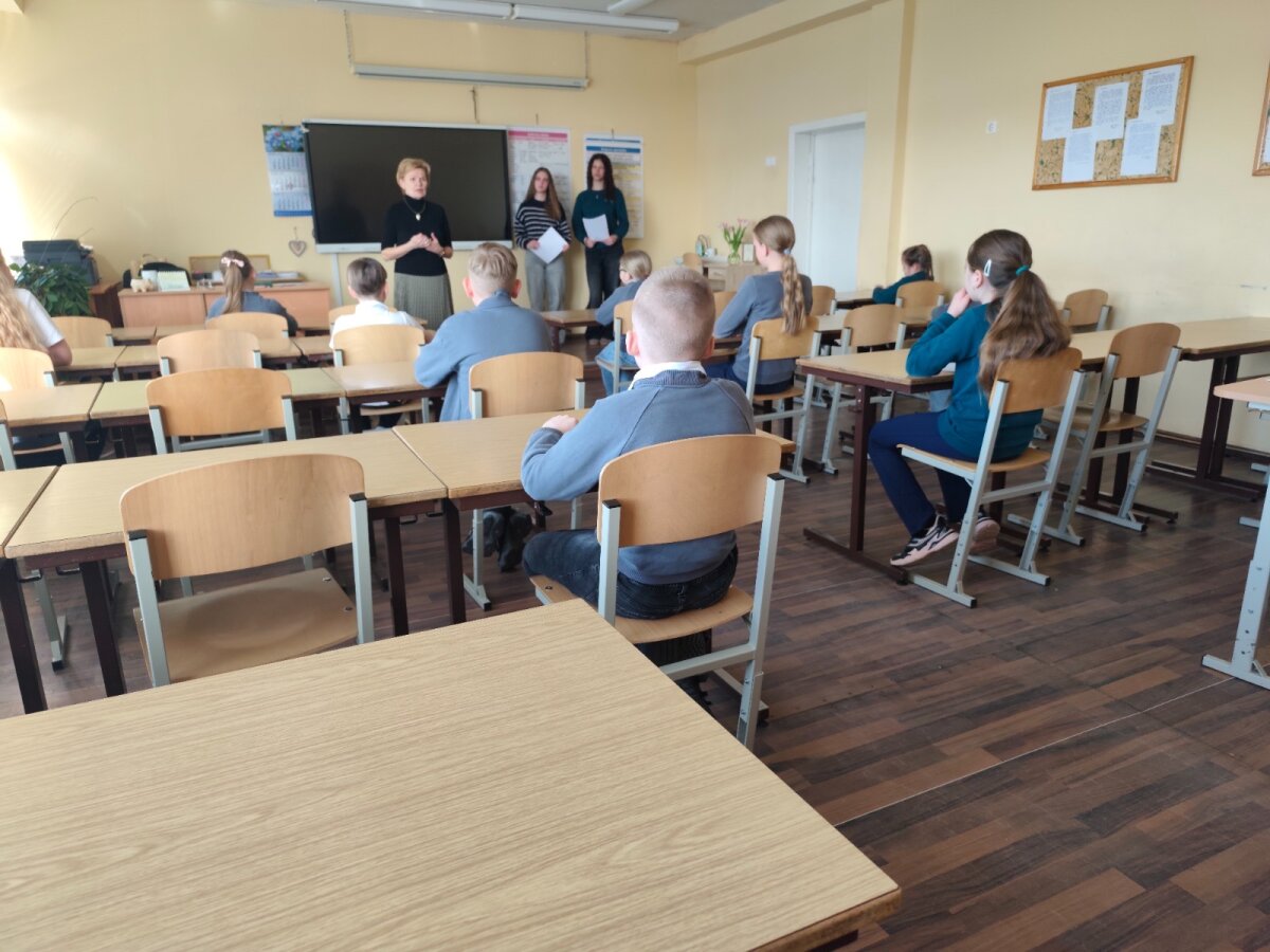 Prieš konkursą aštuntokės mažiesiems surengė prasmingą pažintį su iškiliu lietuvių rašytoju, vyskupu ir švietėju – papasakojo apie jo gyvenimą, darbus bei indėlį Lietuvos kultūrai.