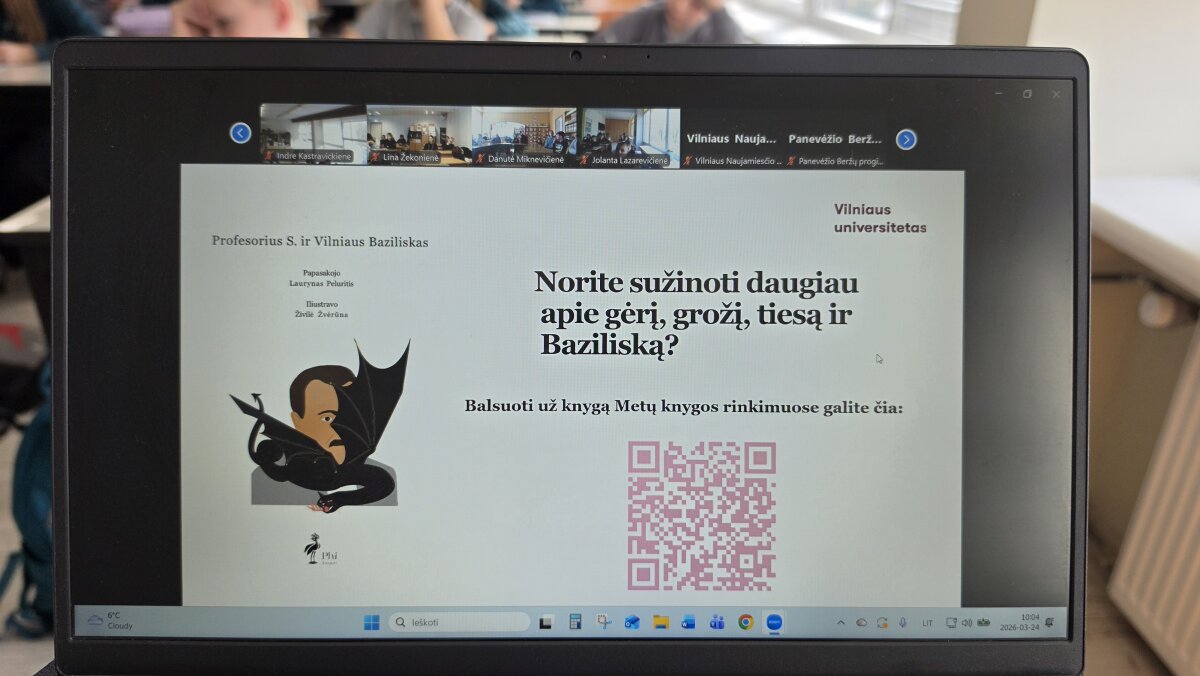 Kovo 24 d. 5c klasės mokiniai dalyvavo įdomiojoje literatūros pamokoje – nuotoliniame edukaciniame susitikime su rašytoju, mokslininku, knygų autoriumi dr. Laurynu Peluričiu.