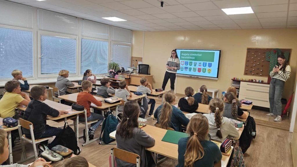 heraldikoje”. Užsiėmimuose dalyvavo 4c klasės mokiniai. Jie sužinojo apie Lietuvos herbuose