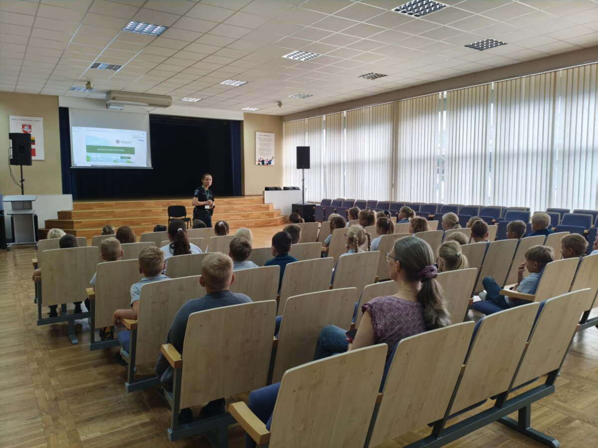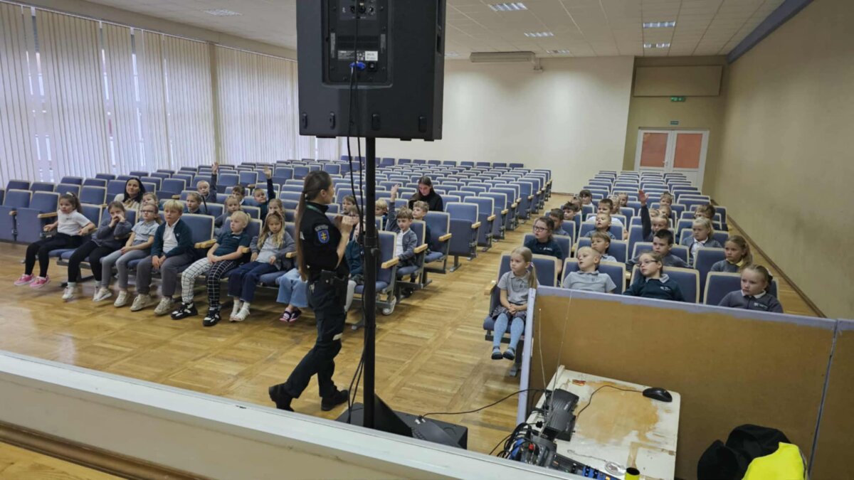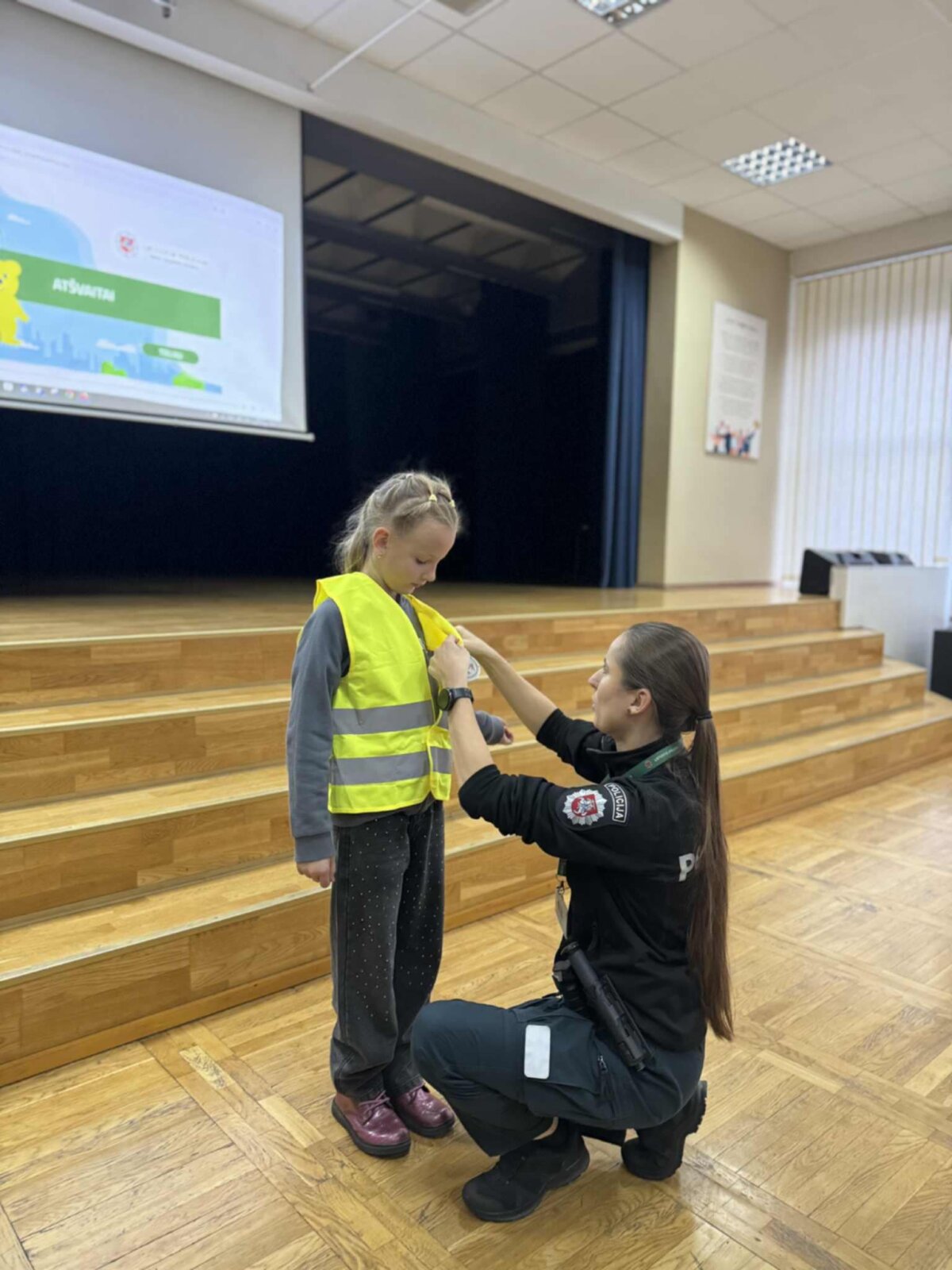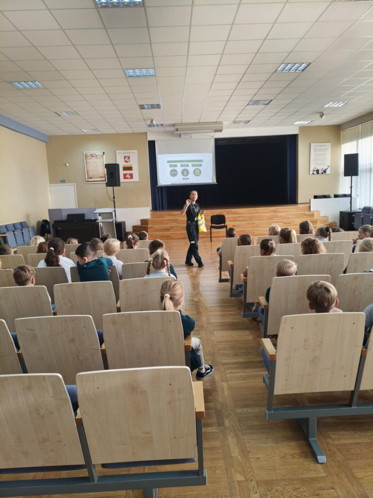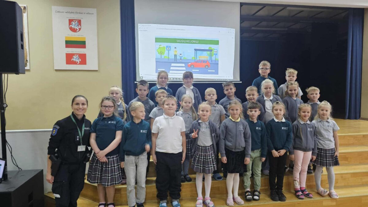 Rugsėjo 15 d. ir spalio 6 d. progimnazijoje lankėsi policijos pareigunė. Ji priminė, kaip saugiai pereiti gatvę, kodėl svarbu nešioti atšvaitus ir kt. Vaikai noriai klausėsi, atsakinėjo į klausimus ir dalijosi patirtimi. Susitikimas buvo įdomus ir naudingas – dabar pirmokai dar geriau žinos, kaip saugiai elgtis kelyje.