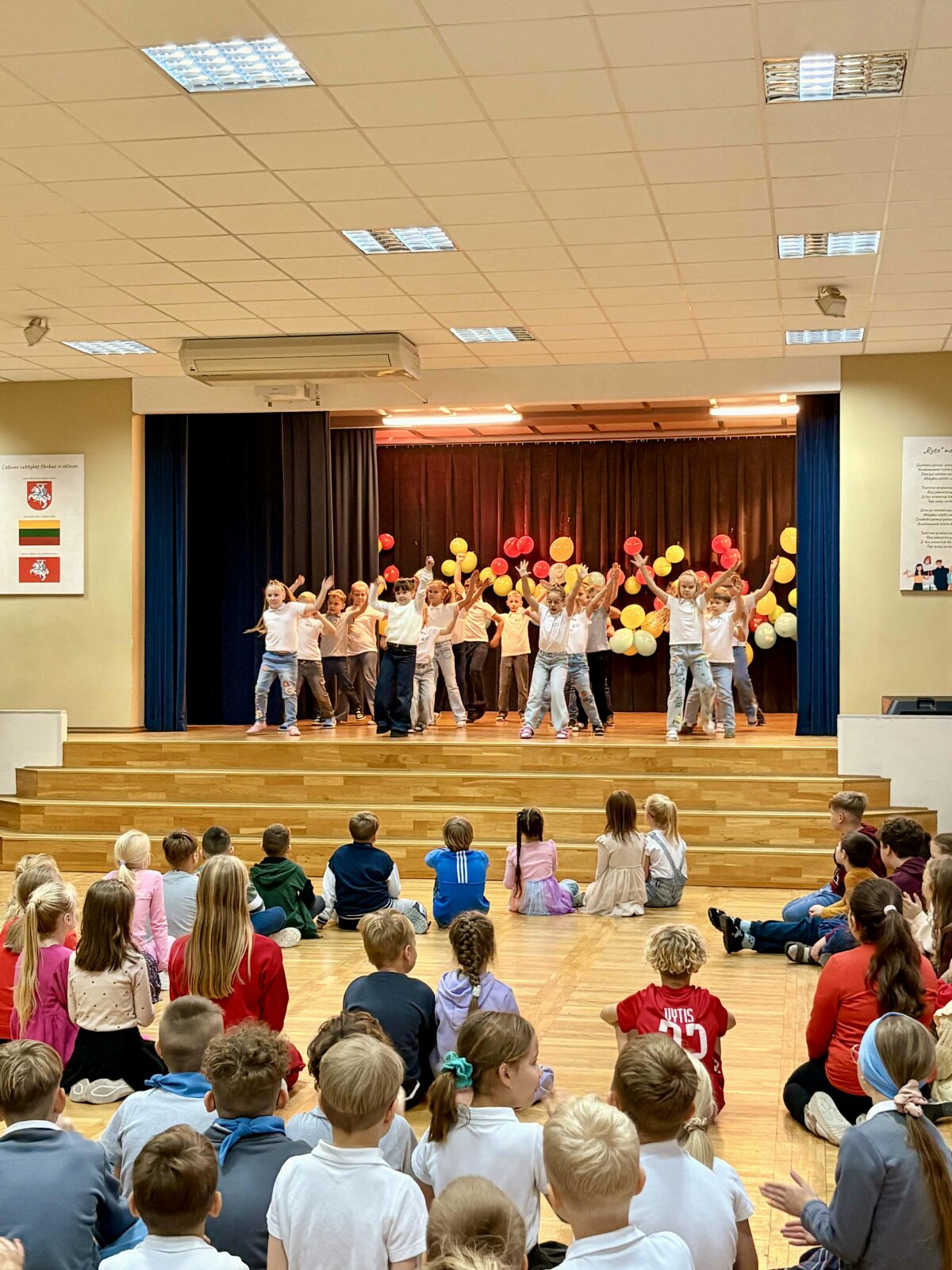 Mažieji mokinukai atvyko puikiai pasiruošę: kiekviena klasė parengė savo prisistatymą – dainavo, šoko ir linksmai sveikino visus šventės dalyvius. Salėje netrūko šypsenų, plojimų ir džiaugsmingo jaudulio – juk tai buvo pirmokų pirmoji didelė mokyklos šventė!