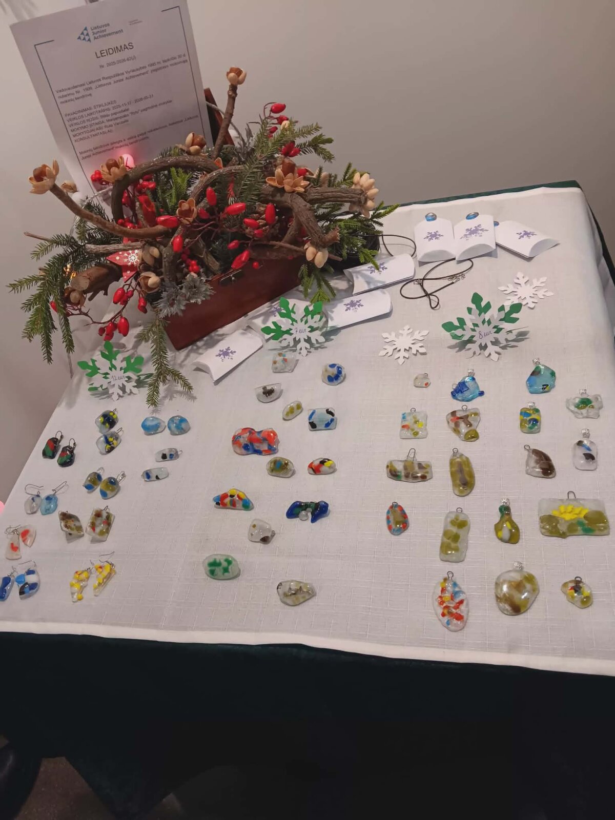 Mokiniai mugėje pristatė verslo planą ir produkciją iš stiklo, lavino pardavimų įgūdžius.