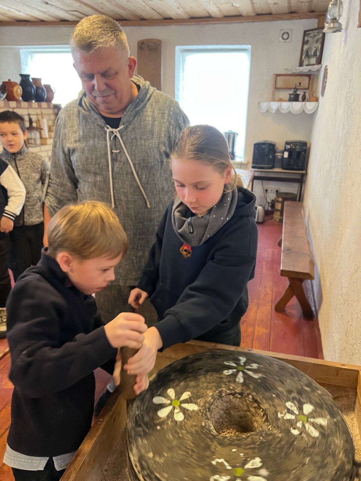 Kalėdų laukimas 2b klasėje šiais metais buvo ypatingas – mokiniai dovanų gavo pramogų dieną, kurios su nekantrumu laukė kiekvienas. Ir laukimas tikrai atsipirko, nes vaikų patirtys tapo kupinos įspūdžių, kūrybos ir šilto bendrystės jausmo. Pramogų diena prasidėjo išvyka į Virbalio bendruomenės namus, kur mokiniai dalyvavo edukacijoje „Duonos kelias“. Vaikai susipažino su Lietuvoje augančiomis grūdinėmis kultūromis, sužinojo, kokį ilgiausią ir prasmingą kelią nueina duona, kol atsiduria ant mūsų stalo. Antrokai patys galėjo išbandyti senovinius darbus: girnomis malė miltus,, išsikepė savo mažą duonos kepalėlį.
