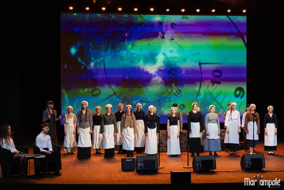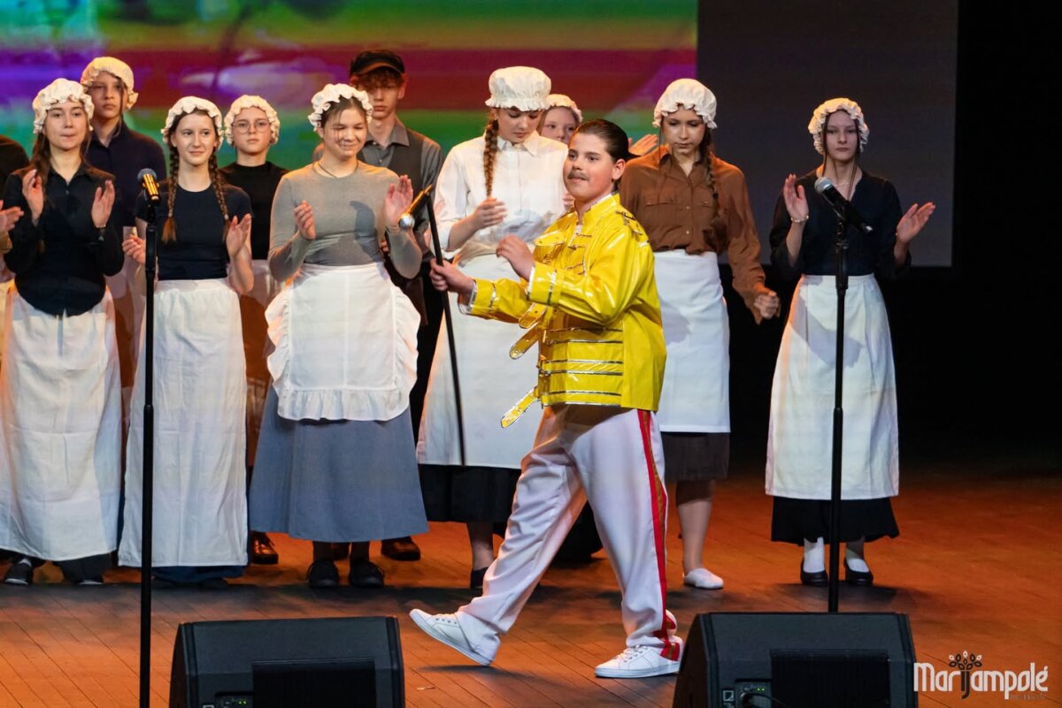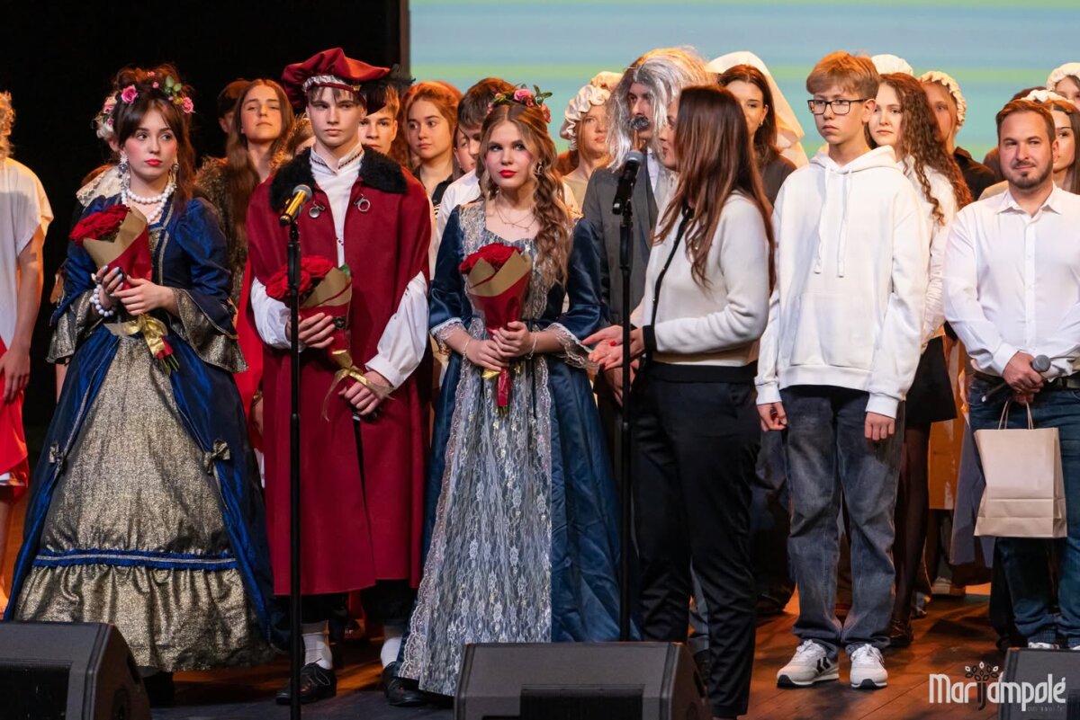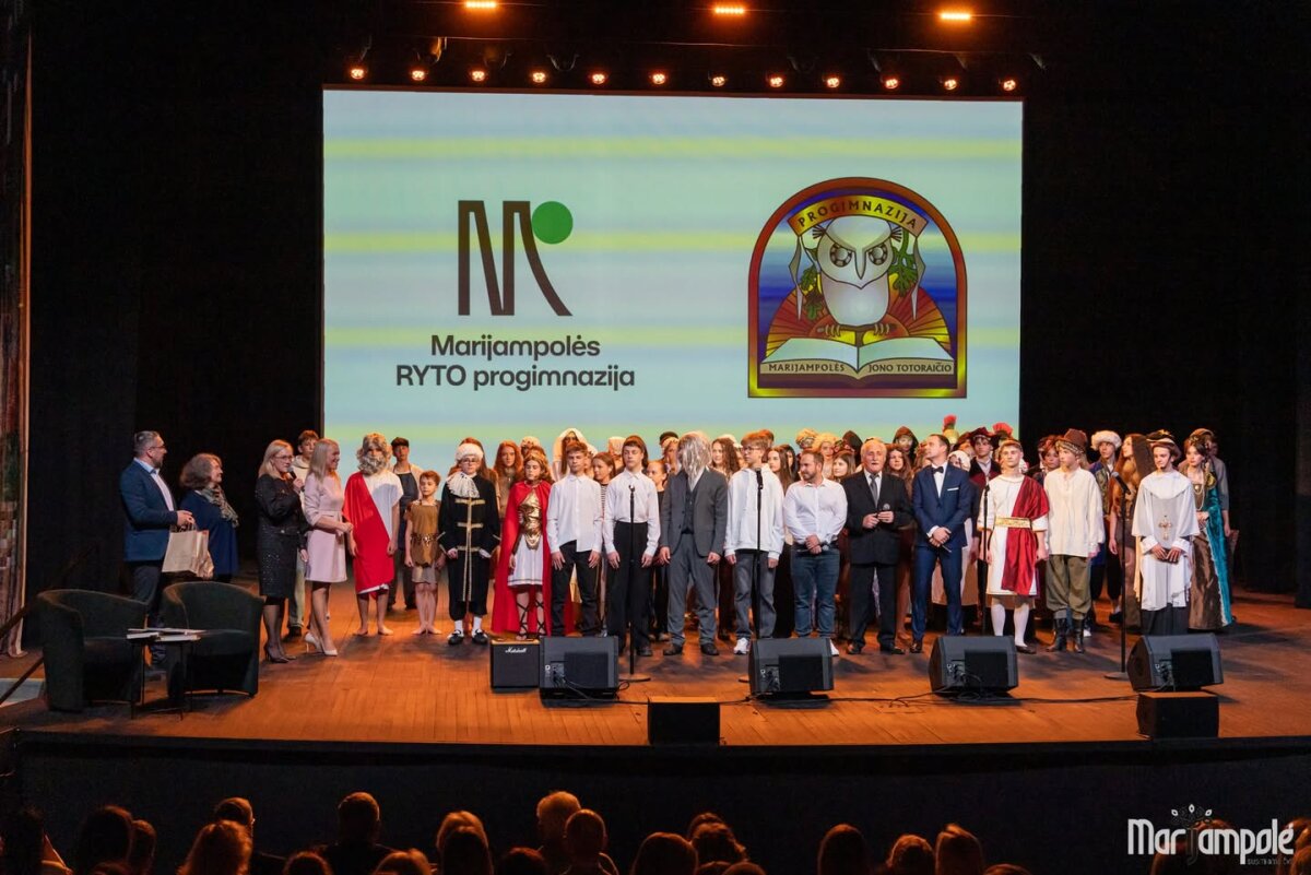 Marijampolės kultūros centro scena vakar tapo gyva istorijos ir šiuolaikinio pasaulio susitikimo erdve – čia vyko integruotas tarpmokyklinis projektas „Mokinių kelionė epochomis“, subūręs „Ryto“ ir Jono Totoraičio progimnazijų bendruomenes.