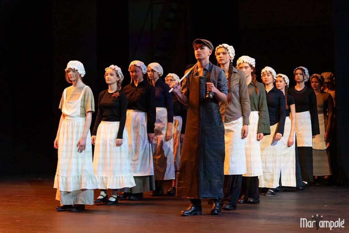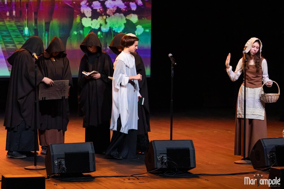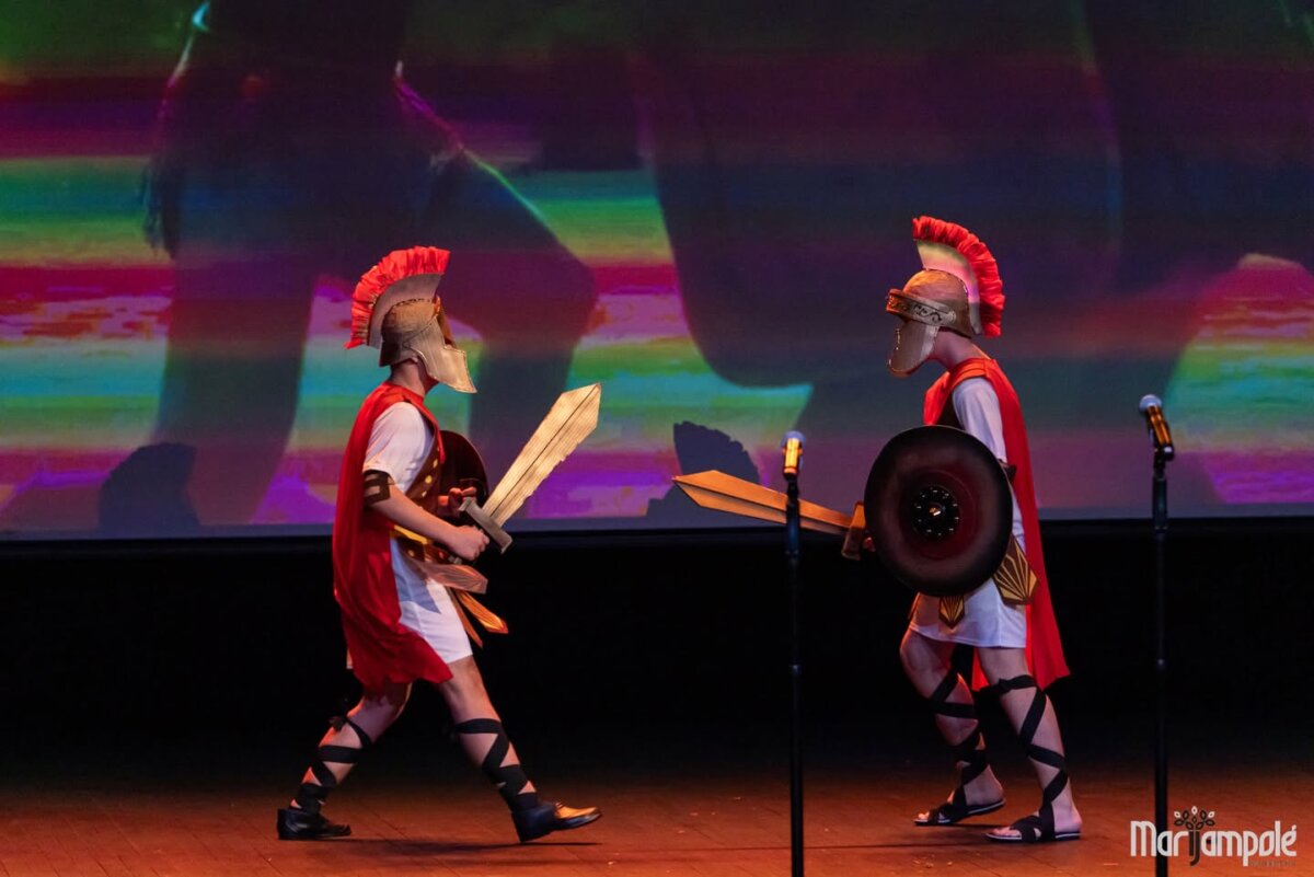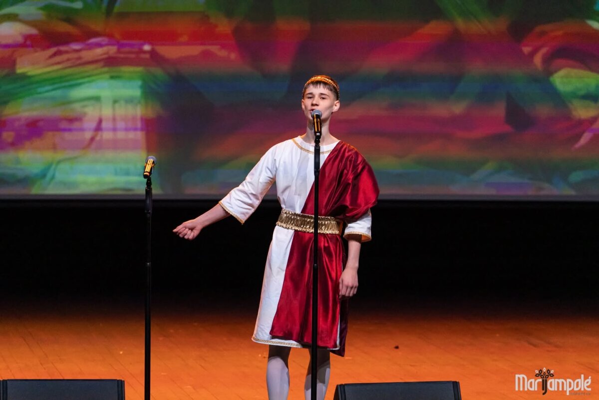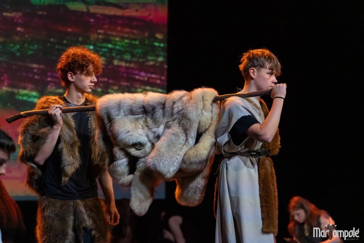 Marijampolės kultūros centro scena vakar tapo gyva istorijos ir šiuolaikinio pasaulio susitikimo erdve – čia vyko integruotas tarpmokyklinis projektas „Mokinių kelionė epochomis“, subūręs „Ryto“ ir Jono Totoraičio progimnazijų bendruomenes.