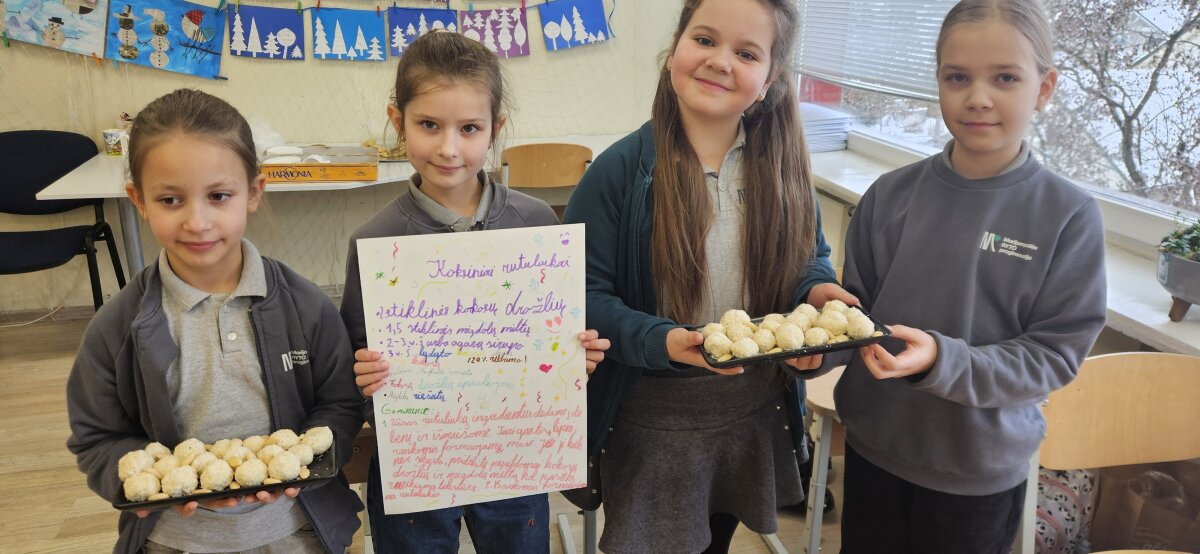 2c klasės mokiniai dalyvavo STEAM projektinėje veikloje apie energiją ir sveiką mitybą. Vaikai domėjosi, kaip žmogus gauna energijos iš maisto, susipažino su maisto piramide ir aptarė sveikų produktų naudą organizmui. Dirbdami grupelėmis mokiniai atliko šias užduotis: rinko sveikų patiekalų receptus, darė plakatus, svėrė produktus ir praktiškai gamino sveiko maisto patiekalus.