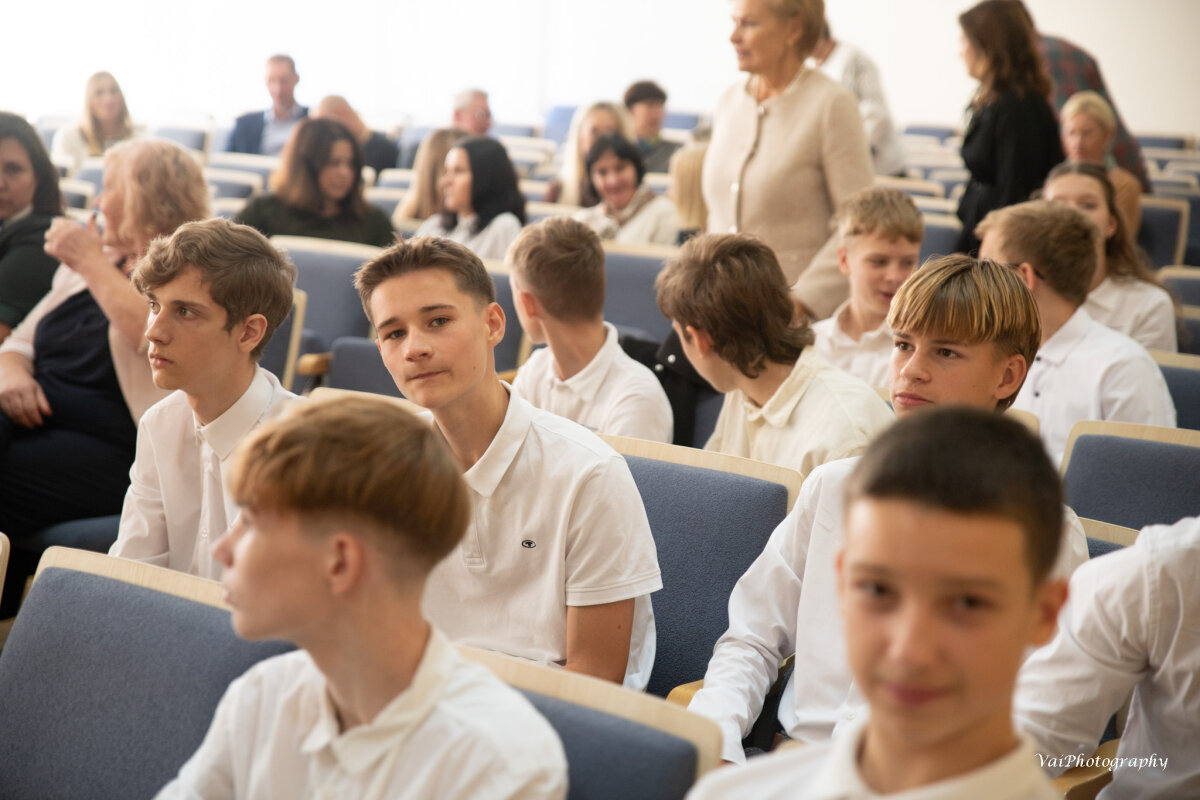 Saulėta spalio pradžia dovanoja vieną po kitos profesines šventes. Dėkingumo žodžių ir gėlių žiedų sulaukė ir socialiniai darbuotojai, ir policijos pareigūnai. Penktadienio rytą mūsų mokykla prisipildė saulėgrąžų šviesos, neįprasto mokinių jaudulio ir mielų staigmenų mokytojams. O kokios šypsenos papuošė mokytojų veidus! Nerimas ir susirūpinimas šią savaitę lydėjo „Ryto“ progimnazijos aštuntokus. Norėjosi sukurti staigmeną, padovanoti kažką naujo, kitokio, įsimintino. Ir jiems pavyko. Ankstų rytą malonus kavos aromatas visus mokytojus sukvietė į mokytojų kambarį. Prie kavos puodelio laukė ne tik tortas, bet ir nuostabus pirmokų sveikinimas. Po pamokų Aktų salėje laukė Auksinių plunksnų įteikimo ceremonija, kurią lydėjo dėkingumo ir pagarbos kupinos eilės, nuoširdžiausi sveikimai, muzika, šokiai ir dainos. Su didžiausiu pasididžiavimu mokiniai įteikė simbolines plunksnas, darbštumo, kūrybiškumo ir vilties simbolius.