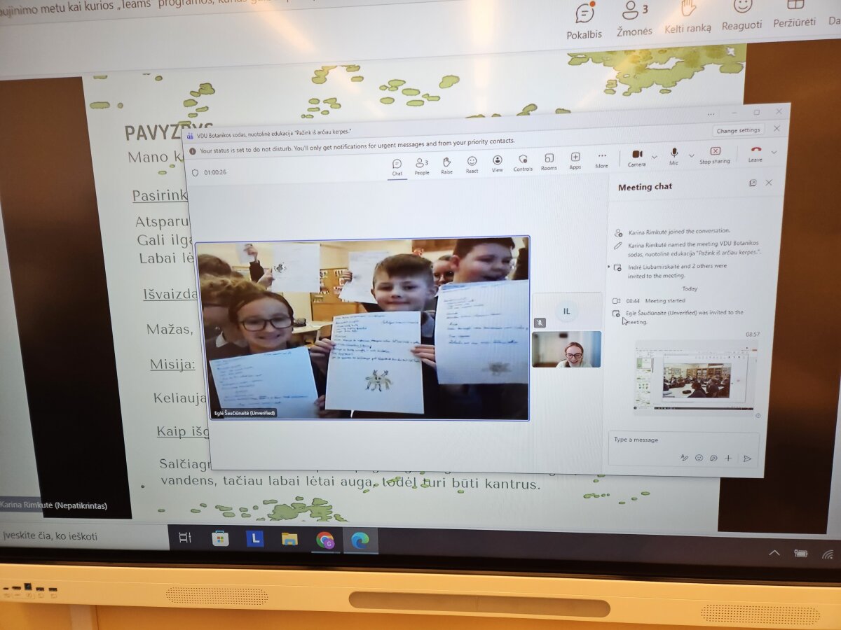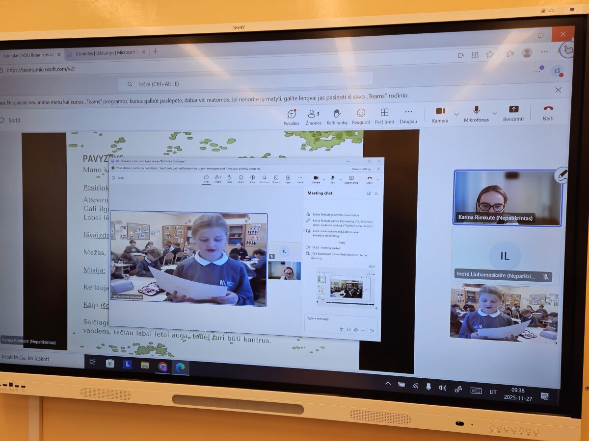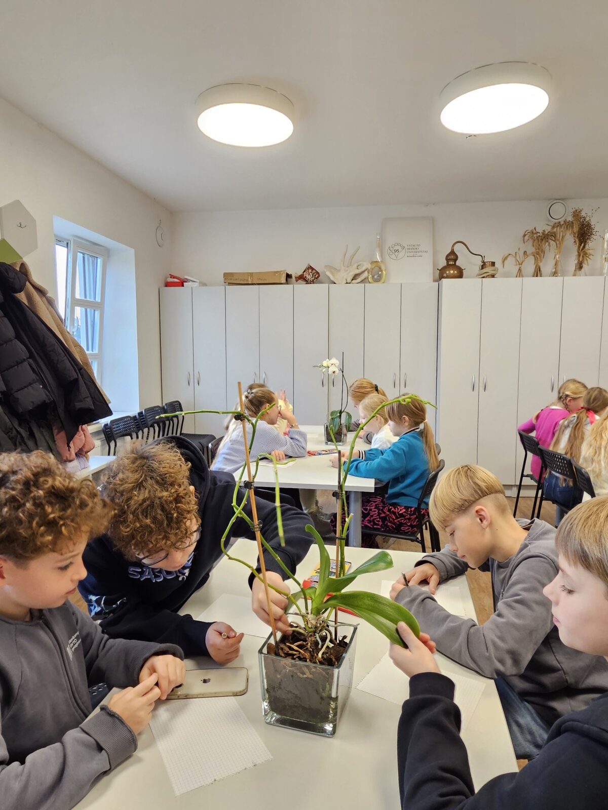 Botanikos sode vaikai sužinojo, kaip augalai tarpusavyje „bendrauja“, perduoda signalus kvapais ar šaknų sistema. Jie klausė augalų „kalbos“, stebėjo eksperimentą su kaštono šakele ir sužinojo, kaip technologijos padeda matuoti augalų reakcijas. Užsiėmimo pabaigoje mokiniai atliko kūrybinį darbą „Ką kalba augalai“.