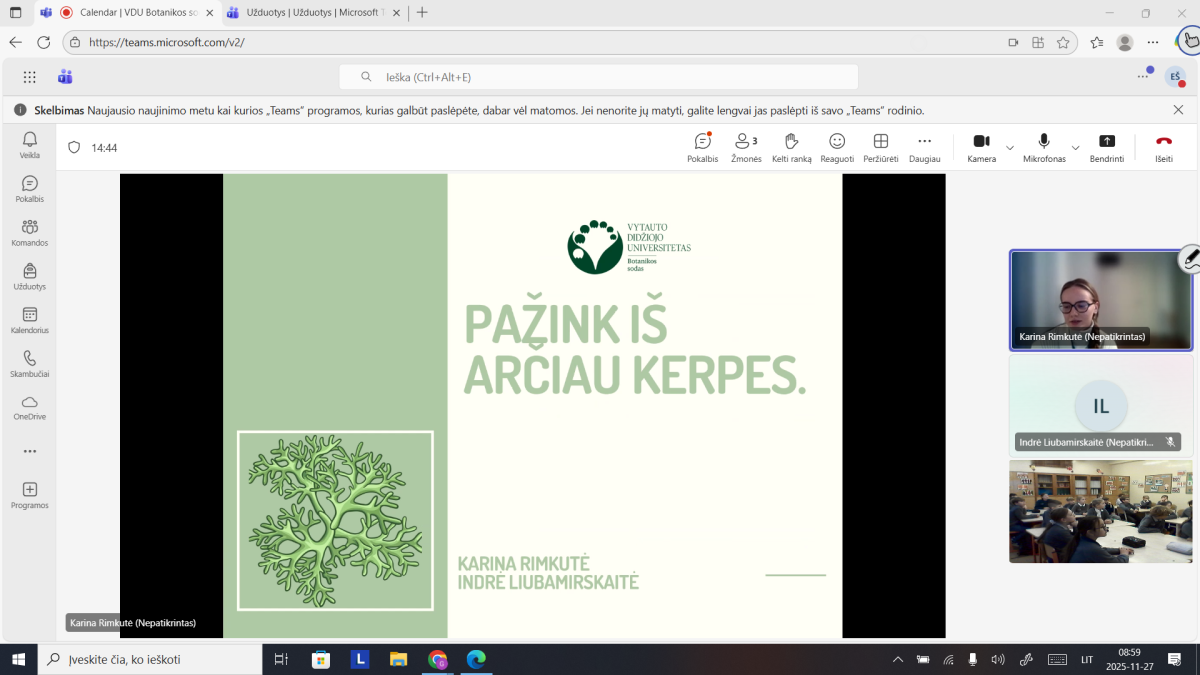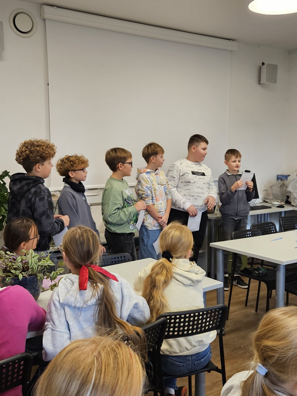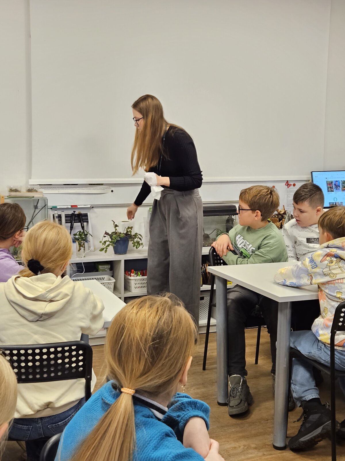 Botanikos sode vaikai sužinojo, kaip augalai tarpusavyje „bendrauja“, perduoda signalus kvapais ar šaknų sistema. Jie klausė augalų „kalbos“, stebėjo eksperimentą su kaštono šakele ir sužinojo, kaip technologijos padeda matuoti augalų reakcijas. Užsiėmimo pabaigoje mokiniai atliko kūrybinį darbą „Ką kalba augalai“.