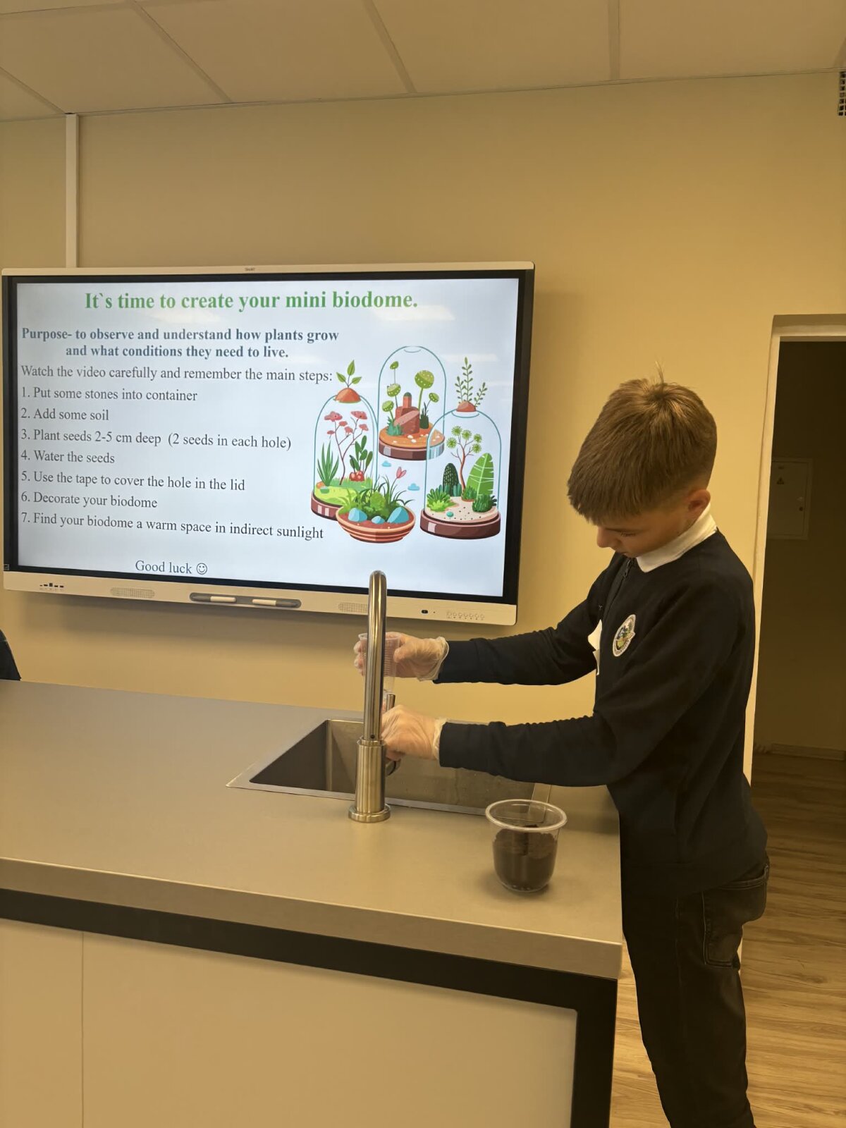 STEAM veiklos vyko Gamtos ir mokslų laboratorijoje. Mokiniai kūrė savo mini biokupolus, kuriuos vėliau pristatė visiems dalyviams. Tai buvo puiki proga lavinti kūrybiškumą, praktinį mąstymą ir viešojo kalbėjimo įgūdžius anglų kalba.